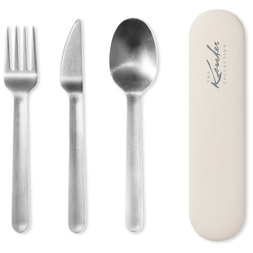 - This compact set of stainless steel silverware keeps a slim profile, while the silicone carrying case helps things stay clean in transit