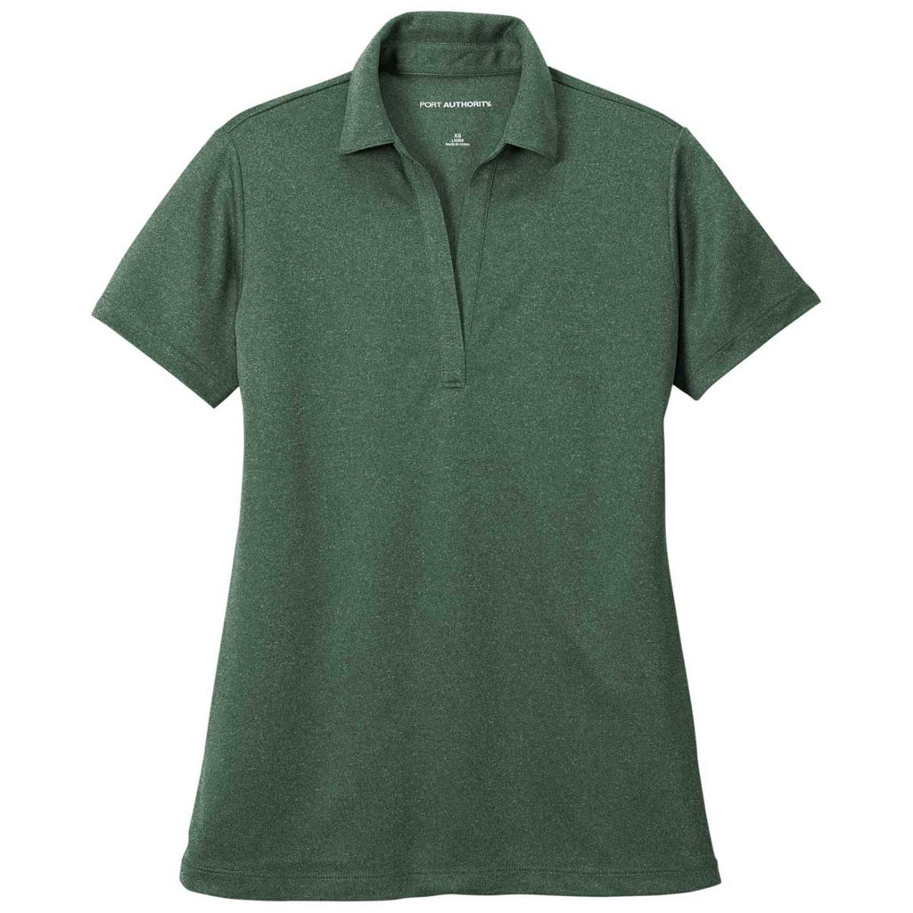 Port Authority Women's Green Glen Heather Heathered Silk Touch Performance Polo
