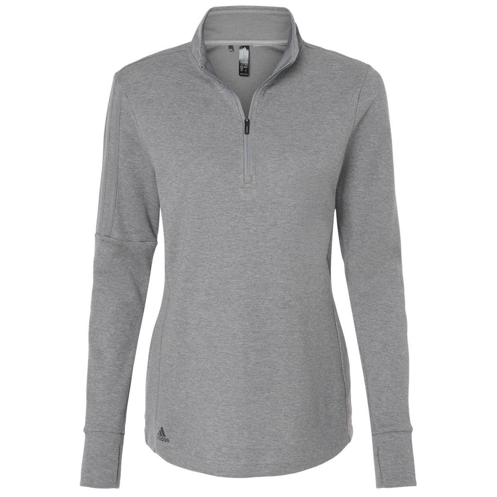 Women who love getting active will appreciate the functionality of the adidas Women's Grey Three Melance 3-Stripes Quarter Zip Pullover. Made from a special moisture-wicking fabric, this hooded sweatshirt features a sleek silhouette and a variety of on-trend color options. All it's missing is your company's custom logo or design.