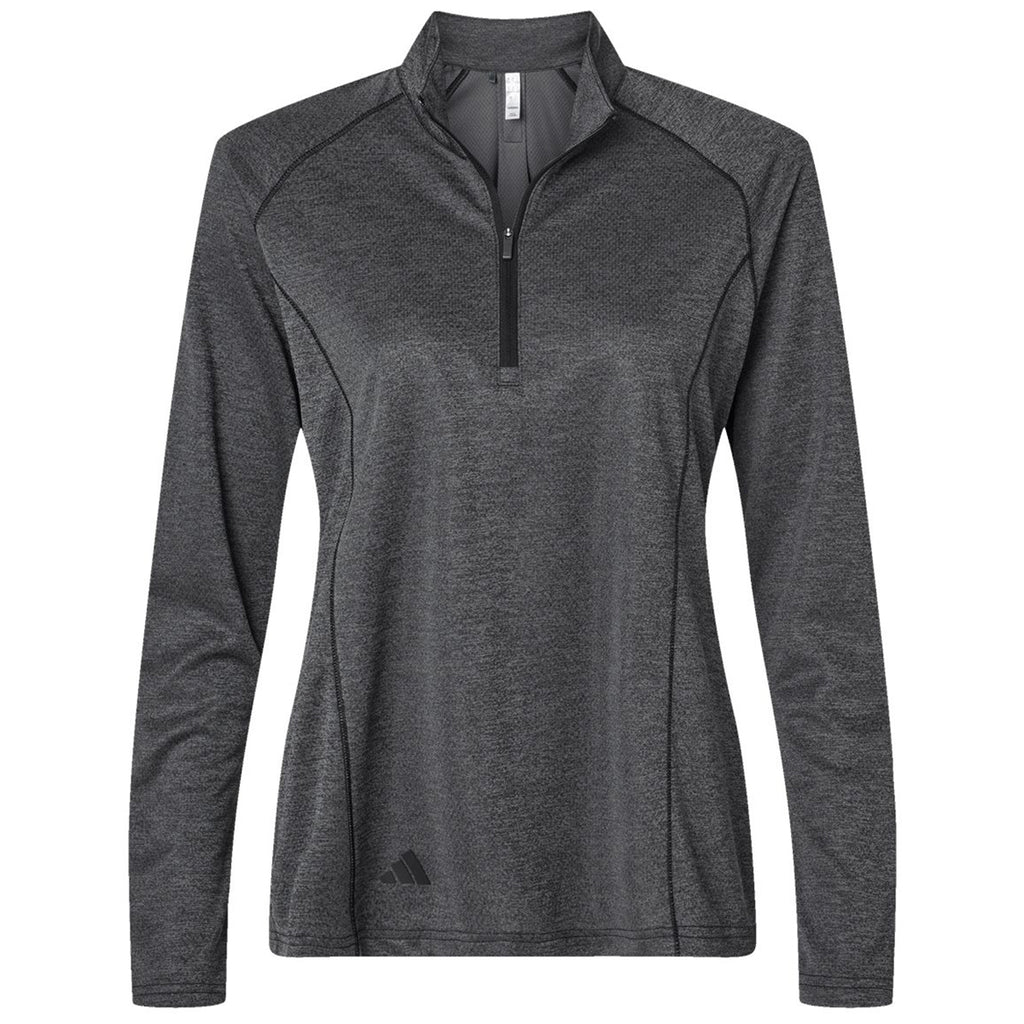 Adidas Women's Black Melange Space Dyed Quarter Zip Pullover with a custom design offers a unique option when it comes to style. The gorgeous pullover with a stand-up collar and back pleat has a regular fit for all-day comfort. Perfect when worn alone or layered as you run errands, commute to work, or play a quick round of golf.This product cannot ship outside of the United States.
