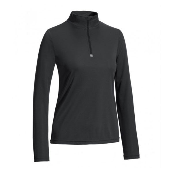 Expert Women's Black Quarter Zip Training is a full-sleeve versatile top which can be either be worn as a base-layer or as an outer layer. Crafted from 100% microfiber polyester pk maX. The performance-driven fabric wicks moisture away from the skin. Half zipper flap allows a customizable ventilation and fit. Personalize workout routine with this customizable winter top for women. Create a head-turning activewear shirt sporting your company's logo to give long-term exposure to your brand's identity.