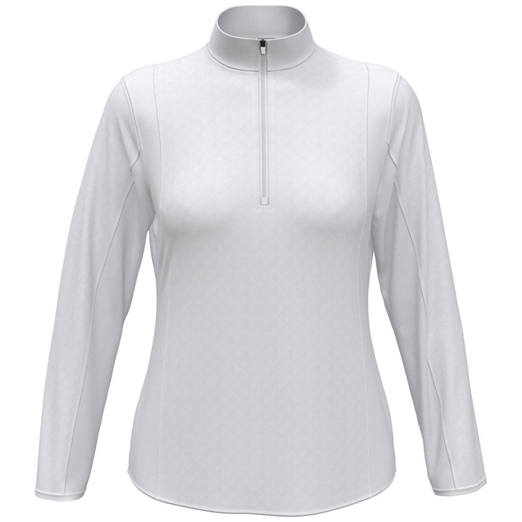 Callaway Women's White Mid-Weight Diamond Quilted Fleece 1/4 Zip with custom embroidery can be worn alone or layered for a versatile all-season look that is stylish and gorgeous. The fabric offers moisture-wicking and sun protection, so you can choose this fleece when at the driving range, while out hiking, or simply commuting to work.