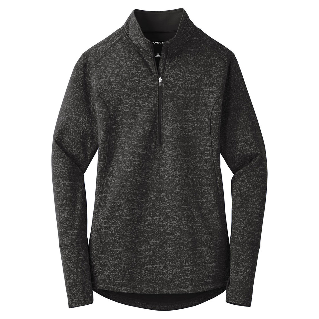 Sport-Tek Women's Black Sport-Wick Stretch Reflective Heather 1/2-Zip Pullover