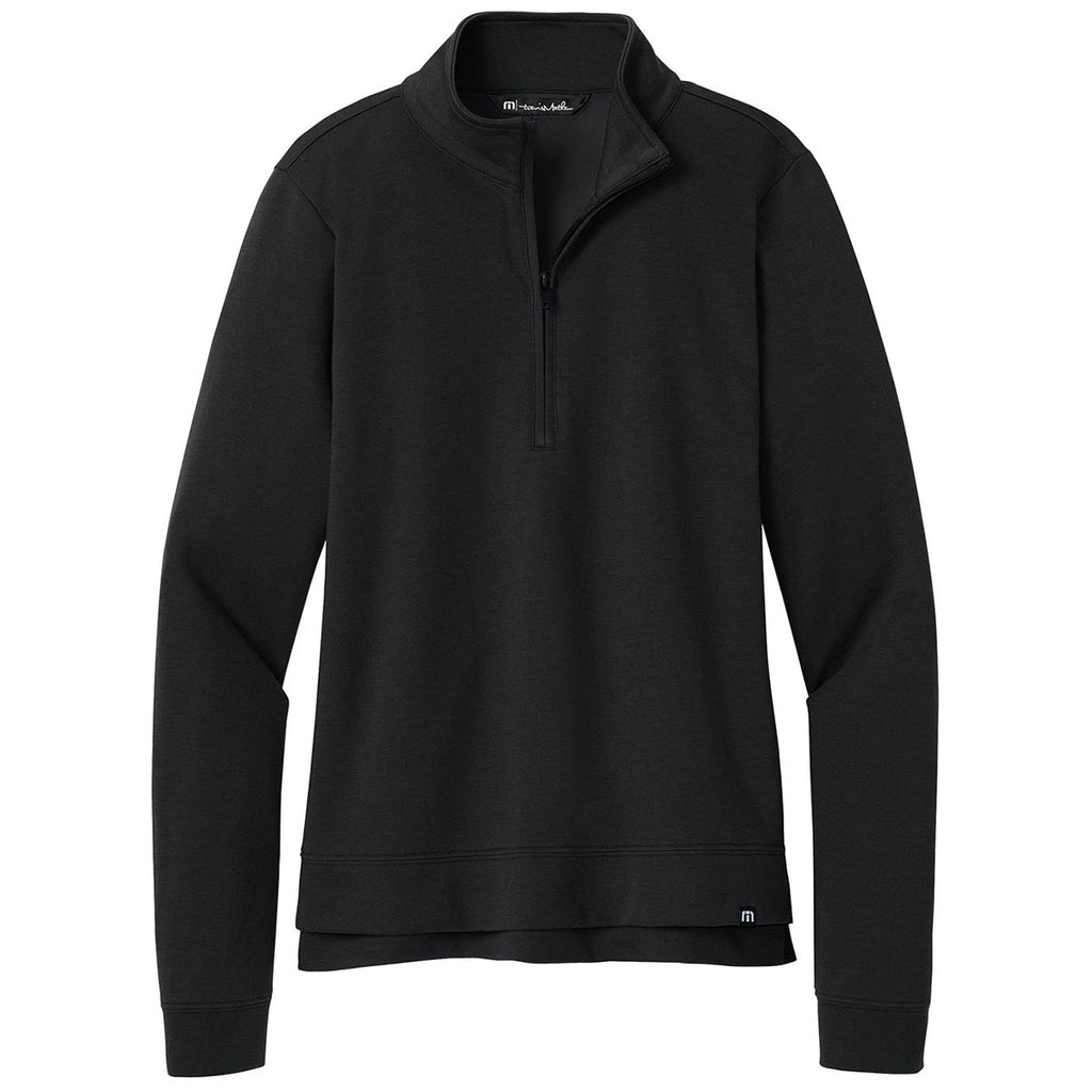 TravisMathew Women's Black Coveside 1/2-Zip with a custom logo brings together comfort and style in a versatile design. The moisture-wicking fabric keeps you dry and comfortable, while the 1/2-zip allows easy layering. Ideal for outdoor activities or casual days, this pullover offers a polished yet relaxed look that suits both athletic pursuits and weekend outings.This product cannot ship outside of the United States.