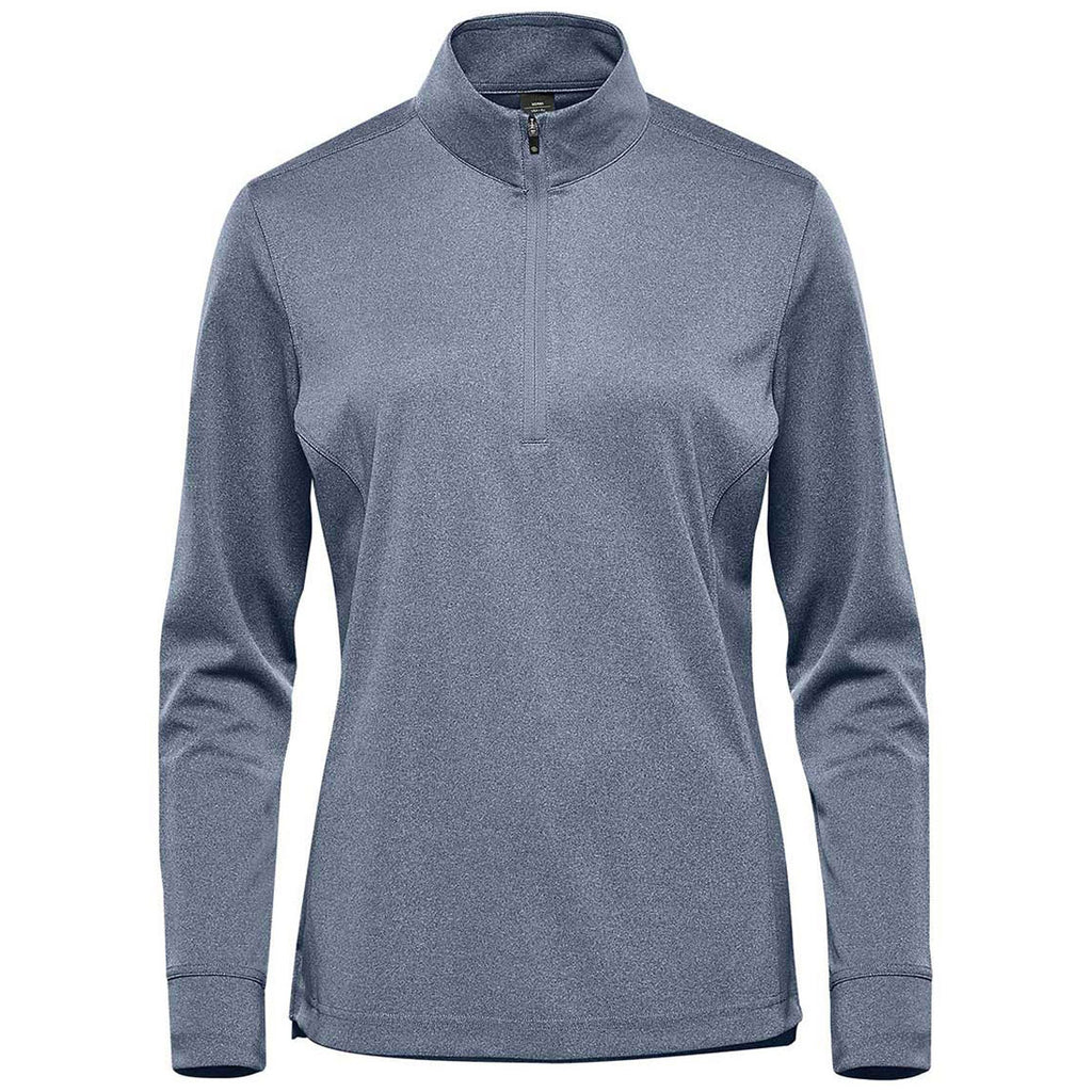 Embroidery will look amazing on the Stormtech Women's Navy Heather Dockyard 1/4 Zip Pullover. This streamlined base layer pullover is treated with moisture and odor control to keep you comfortable whether enjoying a hike in the mountains or strolling through your morning commute. The 1/4 zip style allows for easy on and off while still creating a feminine silhouette. Add a company logo to the pullover to create an employee gift that everyone can enjoy or a custom design to show support for a team or cause. The versatility of this pullover is limited only by your imagination. Place an order today.Highlights