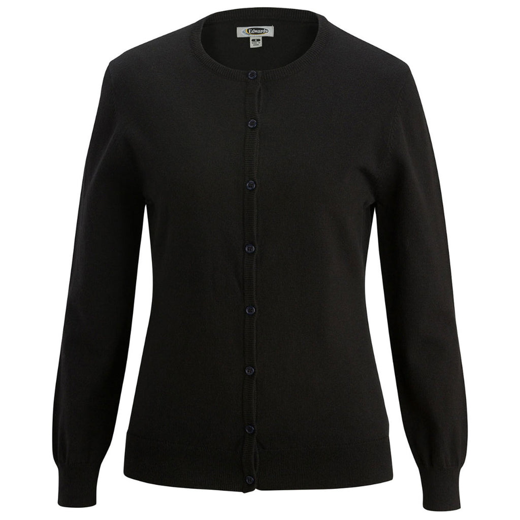 Improve your wardrobe with a custom Edwards Women's Black Twinset Cotton Cardigan & Shell. This simple twinset is a perfectly paired short-sleeve shell and classic cardigan with dyed to match buttons. Add a company logo to use as corporate apparel or part of an employee uniform or something custom to build your own logoed apparel collection. The traditionally fitting, jewel neck cardigan with rib-knit collar, cuff, and hem is conservative without being unfashionable. The lightweight cotton blend is soft and smooth for all day comfort. Easily transition from the office to dinner out with the family or wear on your day-to-day errands.Highlights