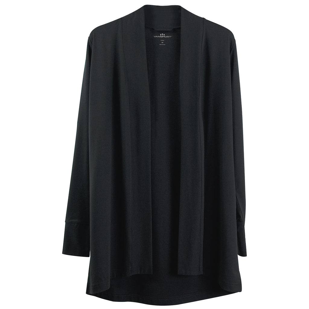 Sleek, stylish, and contemporary, the Vansport Women's Onyx Grace Flow Cardigan will show off your company's custom logo while also ensuring the ladies on your team look polished and professional. Made from a moisture-wicking performance fabric, it's as great for lounging around as it is for professional events.Highlights