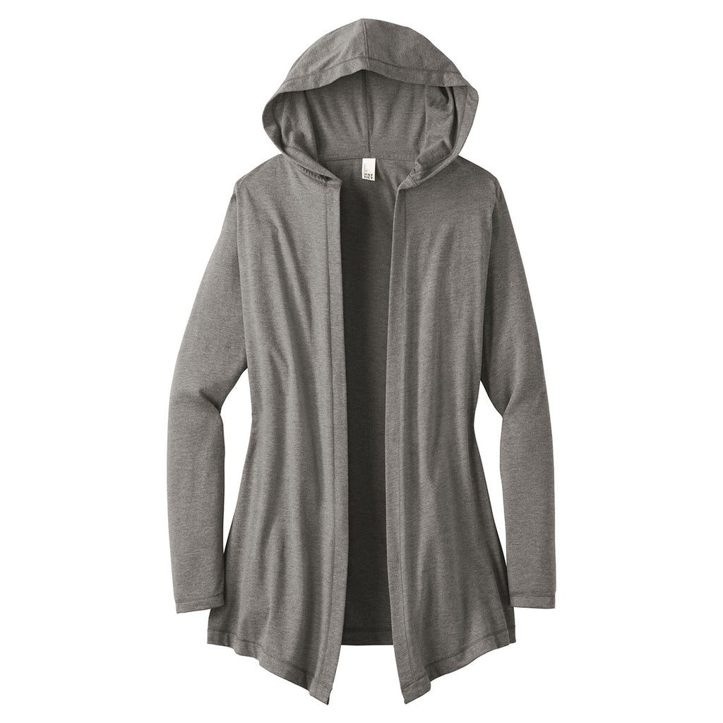 Achieve corporate apparel perfection by ordering the embroidered District Women's Grey Frost Perfect Tri Hooded Cardigan for the members of your team of high achievers. Cover stitch details accentuate a stylish design that gets your team noticed at corporate sponsored events. Turn the attention into sales by attaching your company logo on the large imprint area. Logoed company apparel lets everyone know your business offers nothing but the finest quality products. Soft cotton blends with rugged polyester and rayon to achieve the ultimate in fashion greatness. Wear the versatile cardigan to work and when you entertain friends at home.Highlights