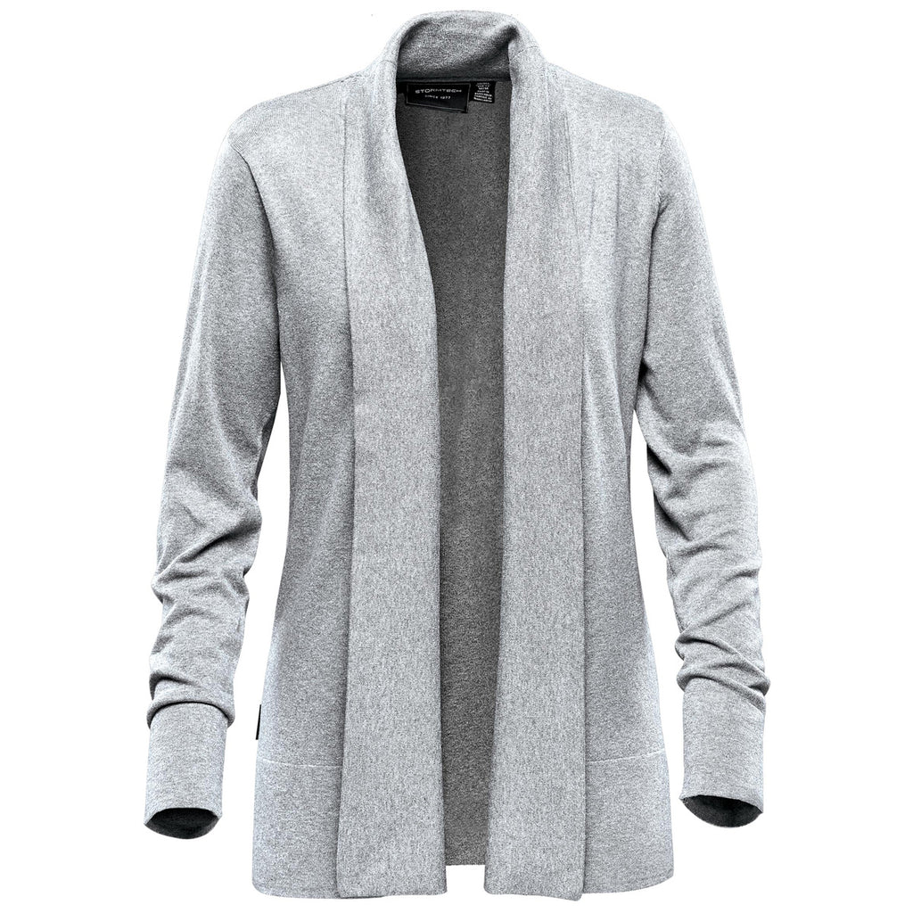 Choose embroidery for the Stormtech Women's Grey Heather Soho Cardigan for an elevated look that is on-trend in the urban wardrobe mix. This 3/4 length cardigan is perfect for cooler weather or when you need an extra layer to complete a look. Add a custom logo to use as part of employee apparel in an office setting or as employee gifts that can be enjoyed year round. This is a casually cultured look that most would appreciate in their wardrobe. Perfect for corporate apparel or just to lounge at home.Highlights
