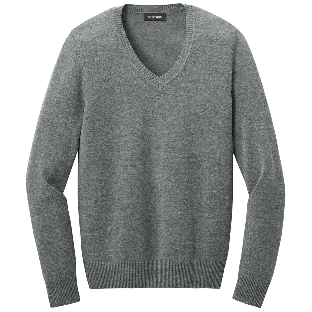 Corresponding Men's Style: Port Authority Men's Medium Heather Grey Easy Care V-Neck Sweater