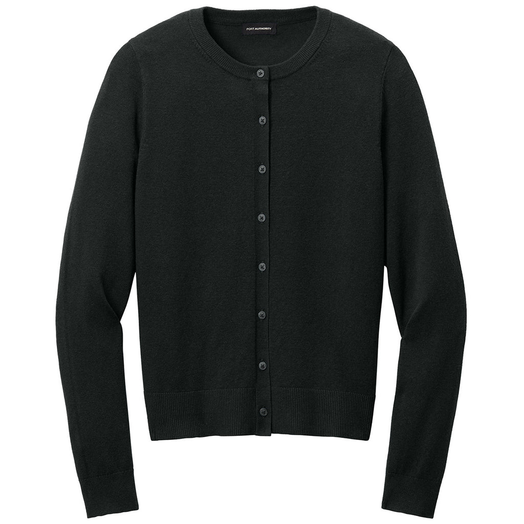 Port Authority Women's Deep Black Easy Care Crewneck Cardigan Sweater