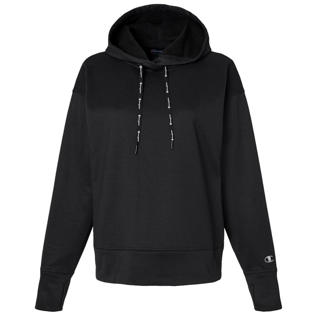 The custom logo Champion Women's Black Sport Hooded Sweatshirt offers cozy warmth and an ideal way to advertise your brand. Add your company name to the top and hand it out at upcoming corporate events.
