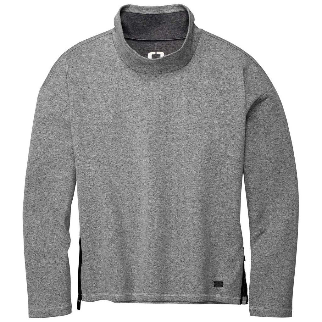 Add a screen print design to the OGIO Women's Petrol Grey Heather Transition Pullover to create a look that can go from corporate apparel to afterhours in a double knit cotton, poly, and spandex blend fleece. An exaggerated cowl neck adds comfort to the not quite corporate, not quite casual look that can go just about anywhere. Add a company logo to use this pullover as a uniform that can be worn alone or layered as needed. Zippered side pockets offer that detail every woman wants in a piece that is so versatile.