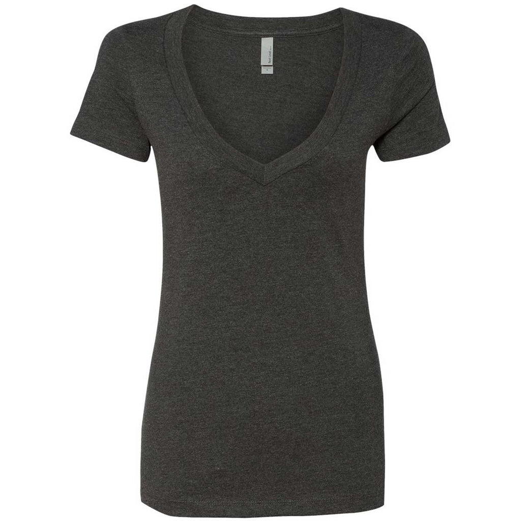 Adding another plain ol' crewneck tee to the outfit isn't always exciting. If you've ever agreed with that statement, perhaps it's time to switch to this Next Level Women's Charcoal CVC Deep V Tee. Not only does it offer a degree of style that you can't get with the usual tee, but it has all the comfort and carefree attitude of a crewneck. If only all shirts could give you an added layer of interest in your outfit without feeling like they added another layer of discomfort as well. But thankfully, v-necks like this can rescue a drab wardrobe in a hurry. With Merchology, you can add a custom logo to take this v-neck to the next level.Setup includes free 2-color logo on 1 location. If you need more colors added to your logo, or another imprint location, please inquire with a Merchologist.