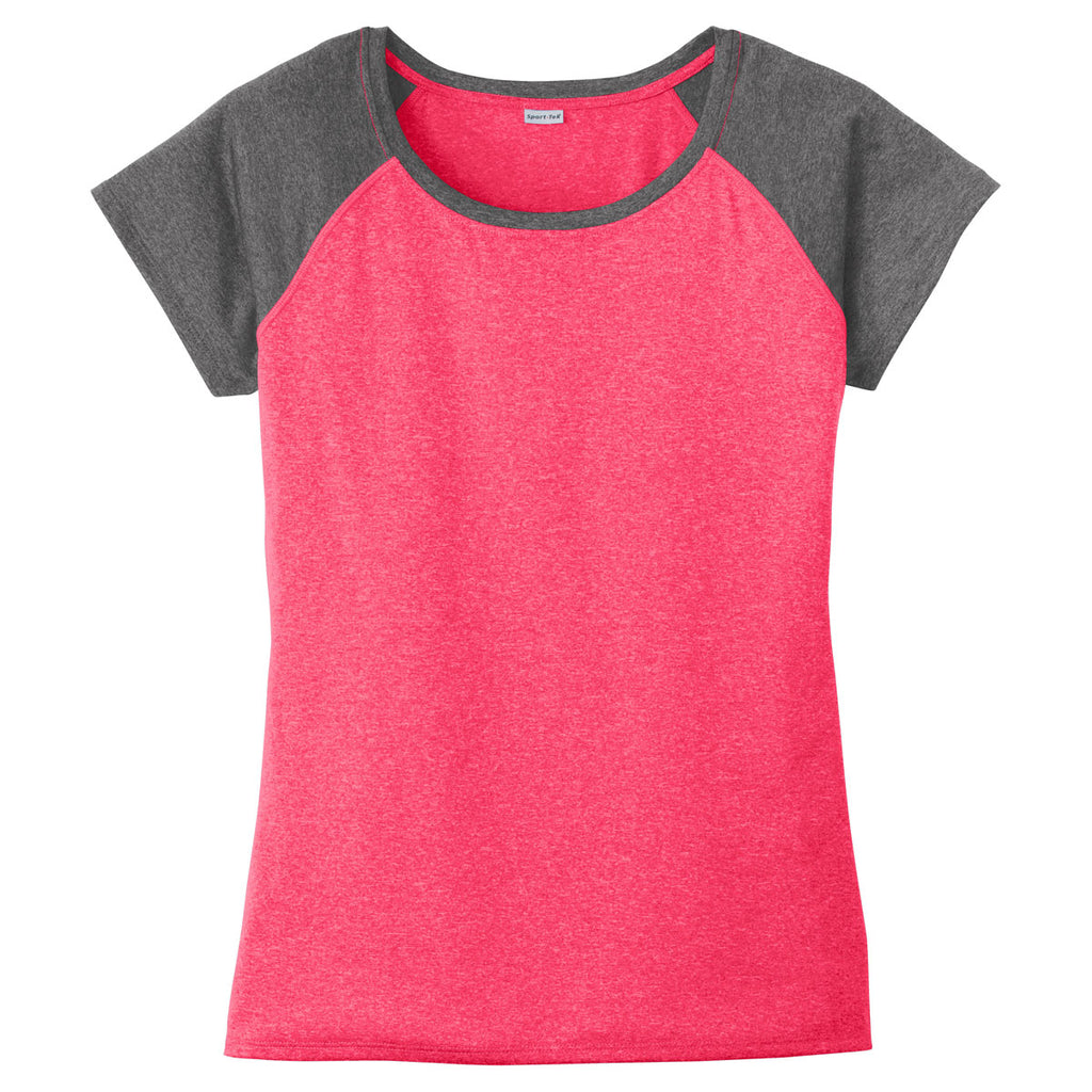 Sport-Tek Women's Pink Raspberry Heather-On-Heather Contender Scoop Neck Tee