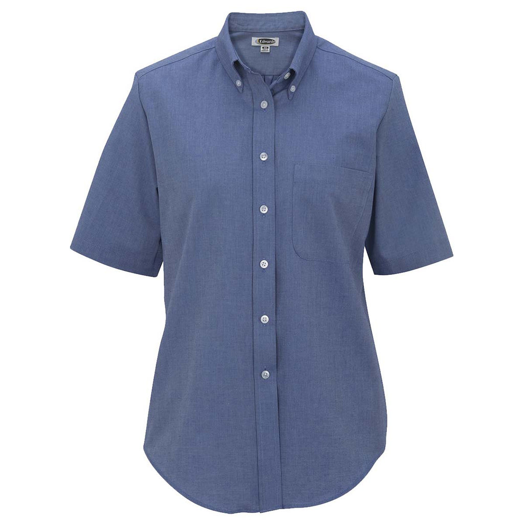 Edwards Women's French Blue Short Sleeve Oxford Shirt