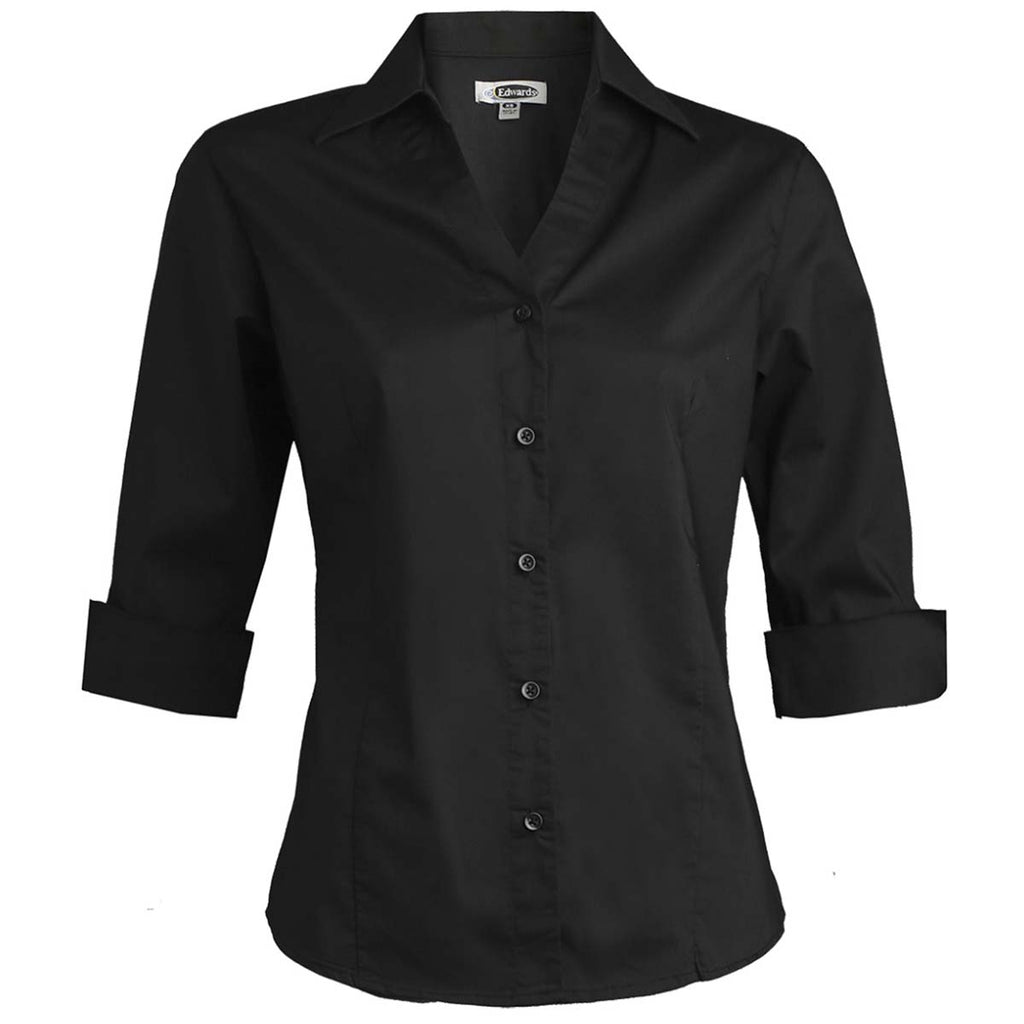 Edwards Women's Black Tailored V-Neck Stretch 3/4 Sleeve Shirt