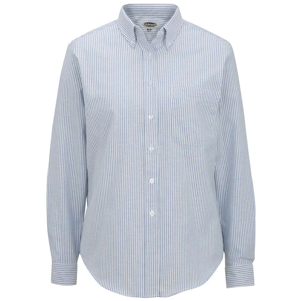 Edwards Women's Blue Stripe Long Sleeve Oxford Shirt