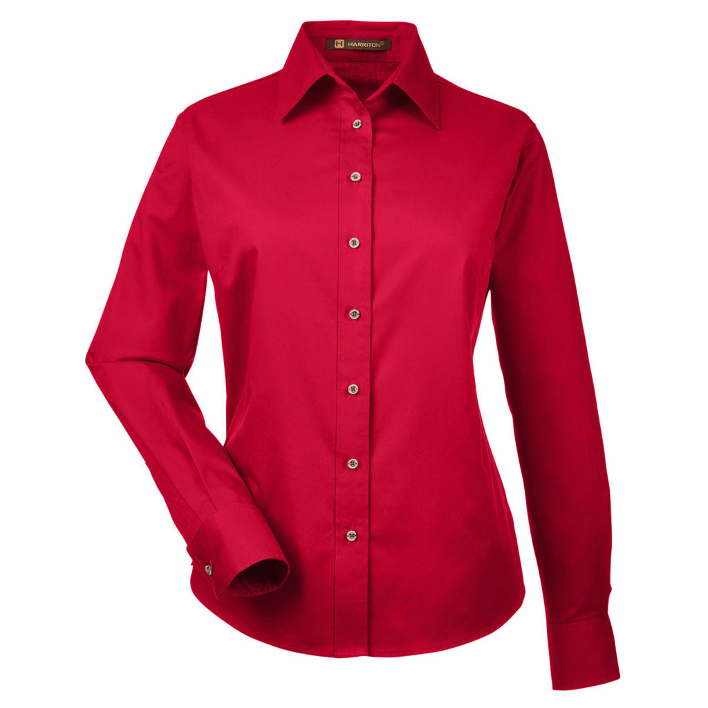 Harriton Women's Red Easy Blend Long-Sleeve Twill Shirt with Stain-Release