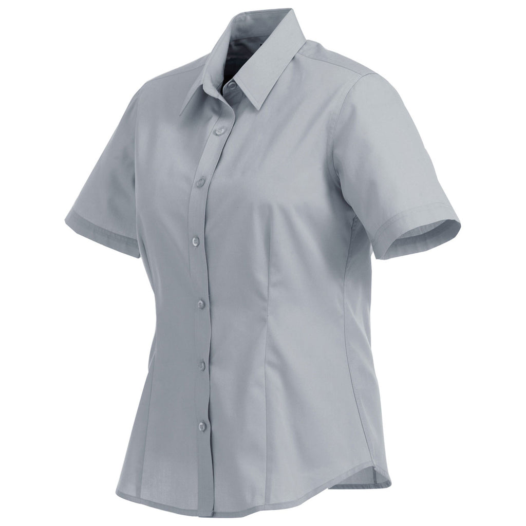 The Elevate Women's Grey Colter Short Sleeve Shirt with your custom logo will look very stylish on your female employees. If you have a corporate event coming soon, consider including this apparel in your giveaway. Show your employees you appreciate them by giving them this high-quality item. Every time they want to look casual and professional at the same time, your employees will reach for this shirt. The Elevate Women's Grey Colter Short Sleeve Shirt is made from poly-cotton and has a flattering fit. It comes in a variety of beautiful colors. Choose the one that goes with your company logo and give your employees a quality gift they deserve.Corresponding Men's Style: Elevate Men's Grey Colter Short Sleeve Shirt