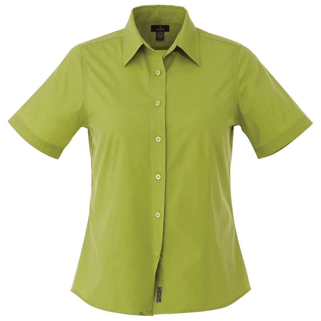 The Elevate Women's Dark Citron Green Colter Short Sleeve Shirt with your custom logo will look very stylish on your female employees. If you have a corporate event coming soon, consider including this apparel in your giveaway. Show your employees you appreciate them by giving them this high-quality item. Every time they want to look casual and professional at the same time, your employees will reach for this shirt. The Elevate Women's Dark Citron Green Colter Short Sleeve Shirt is made from poly-cotton and has a flattering fit. It comes in a variety of beautiful colors. Choose the one that goes with your company logo and give your employees a quality gift they deserve.Corresponding Men's Style: Elevate Men's Dark Citron Green Colter Short Sleeve Shirt