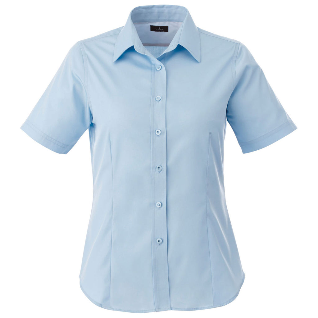 Every woman needs a classic work shirt in her closet, so give your female employees the Elevate Women's Frost Blue Stirling Short Sleeve Shirt with your custom logo on it. It has shaped seams and a tapered waist for a more flattering fit. It is comfortable and looks sharp, so your employees will appreciate this useful gift. It has a decoration-friendly design and is available in several colors. Include this shirt in your corporate giveaway and put a smile on your employees' faces. They will proudly wear it and subtly advertise your brand wherever they go. Make your logo shine on the Elevate Women's Frost Blue Stirling Short Sleeve Shirt.Corresponding Men's Style: Elevate Men's Frost Blue Stirling Short Sleeve Shirt