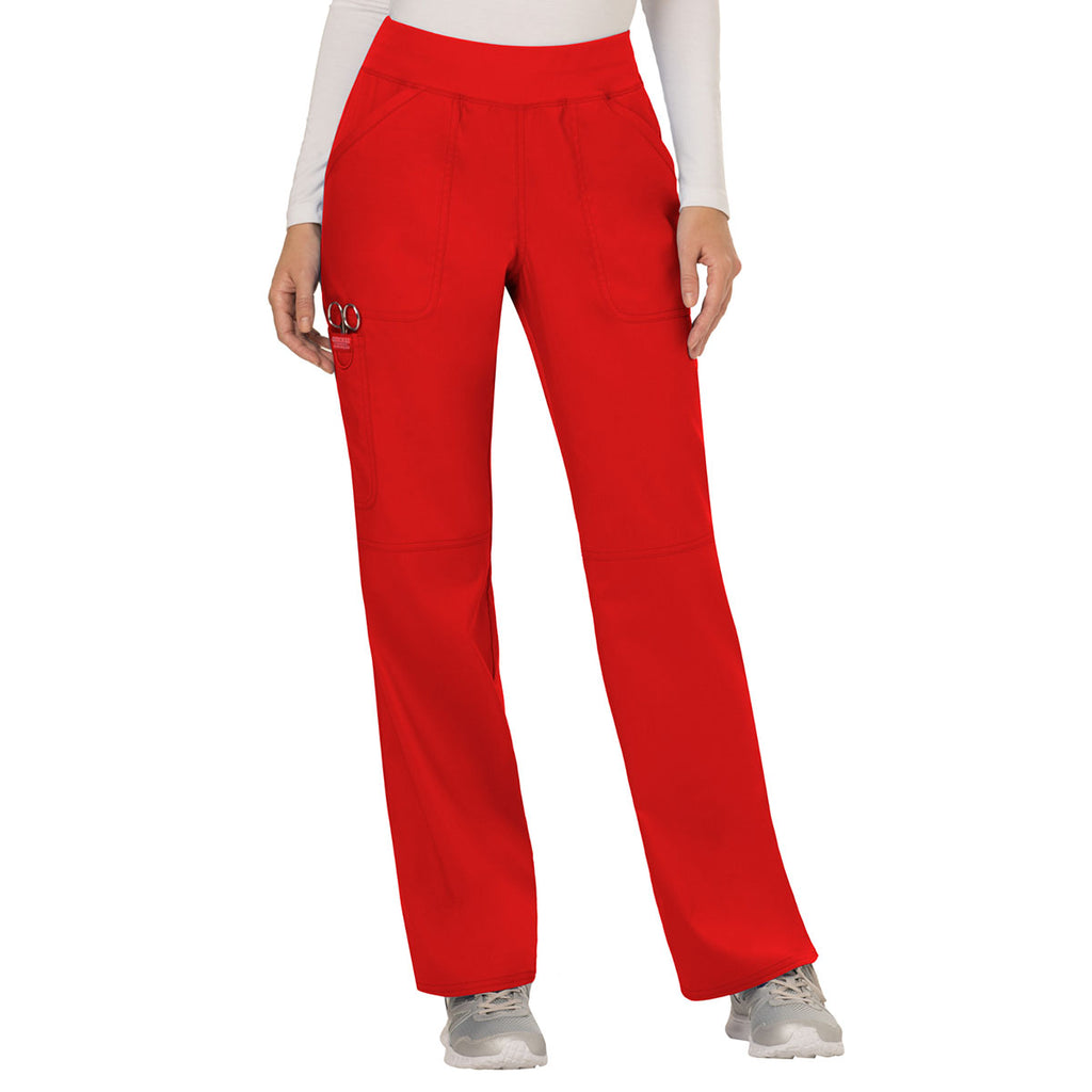 Cherokee Women's Red Workwear Revolution Mid Rise Pull-on Cargo Pant
