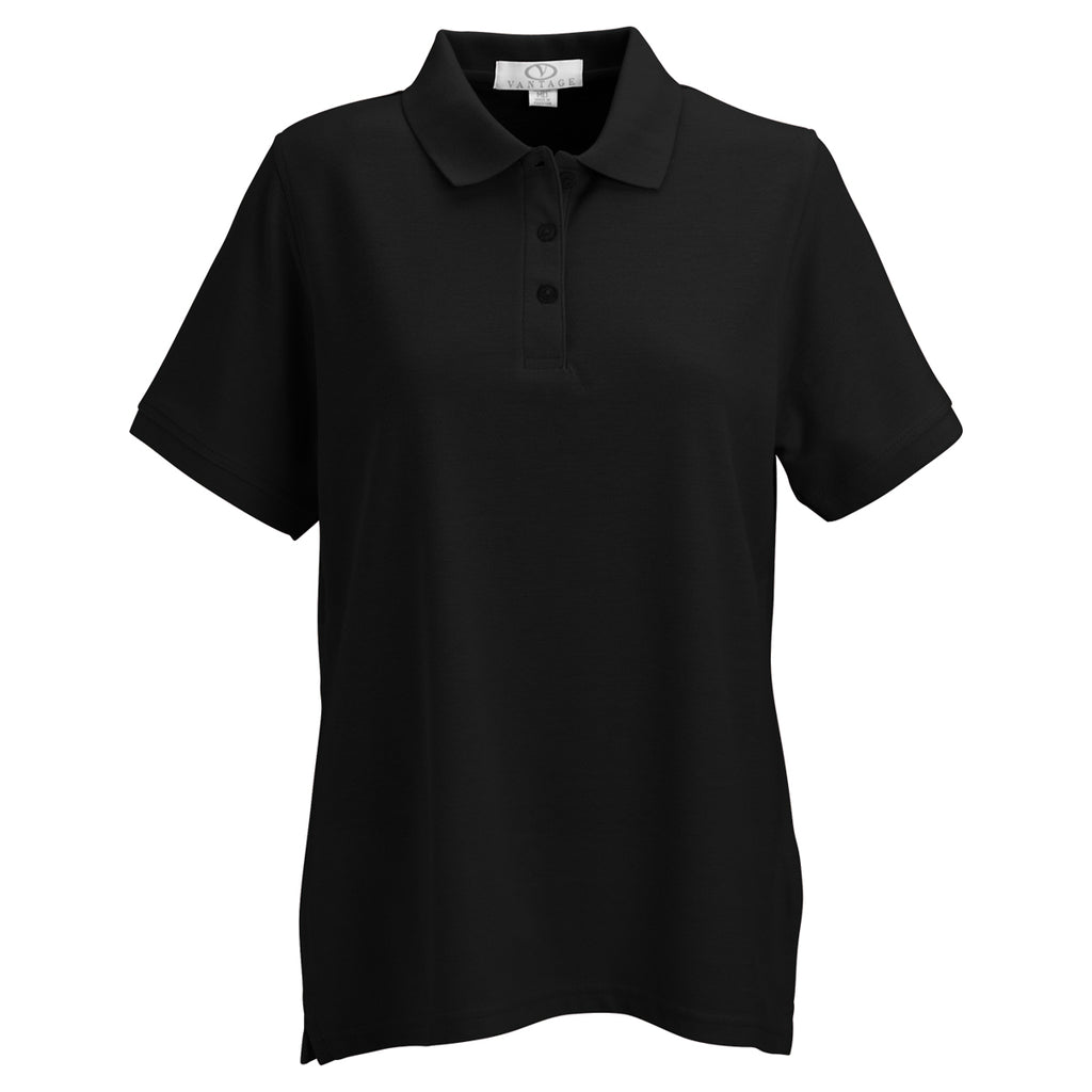 Vantage Women's Black Soft-Blend Double-Tuck Pique Polo