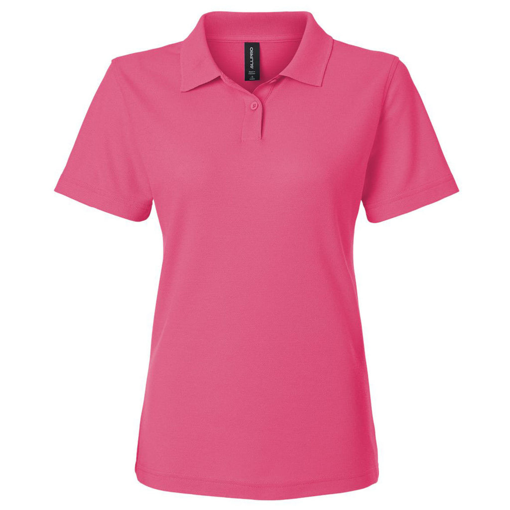 Put your brand in motion with the AllPro Women's Bright Pink Pique Polo, tailored for a flattering fit and breathable wear. This corporate essential is perfect for team uniforms, retail staff, or volunteer events. Add your logo and enjoy a balance of lightweight comfort and dependable structure that works anywhere your team does.Highlights