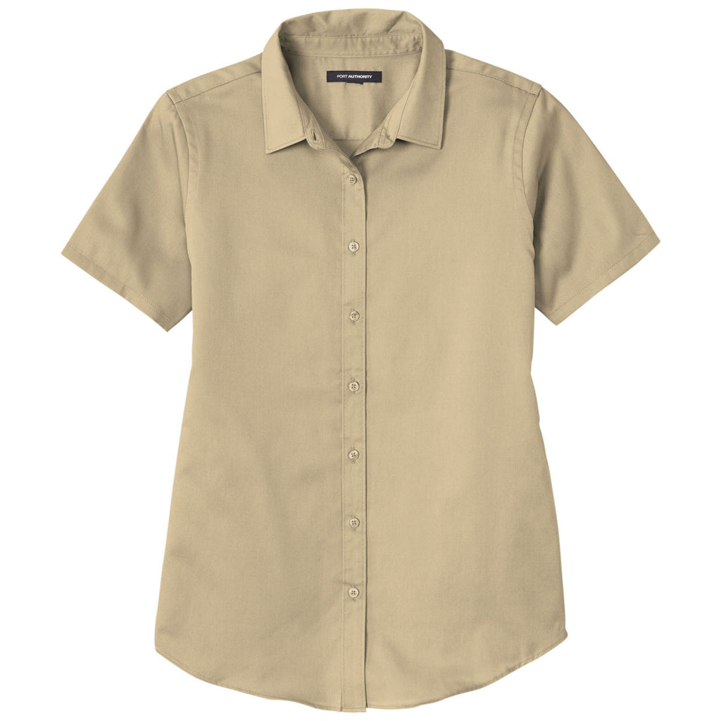 Sport a professional look with the custom embroidery Port Authority Women's Wheat Short Sleeve SuperPro React Twill Shirt. This shirt not only offers a professional look that is perfect for corporate apparel, but is tough enough to stand up to a hard da work. The wrinkle-resistant shirt is soft and smooth for a polished look. Stain release paired with easy care means you can wear this daily without concern. Add a company logo to create community among employees with employee apparel or add a custom logo to include this in a logoed apparel line. The choice is yours.Highlights