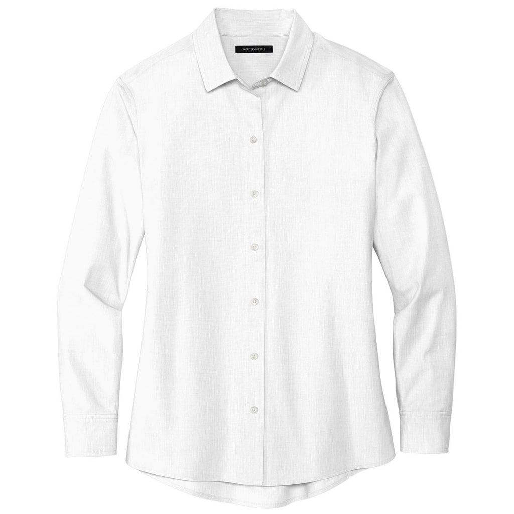 Mercer+Mettle Women's White Long Sleeve Stretch Woven Shirt with embroidery is the corporate and business clothing option that won't break the bank. Add a custom logo to the long sleeve button up to pair with a suit, slacks, or skirt to enjoy a high end look that is stylish, modern, and professional. Place an order right away.Highlights