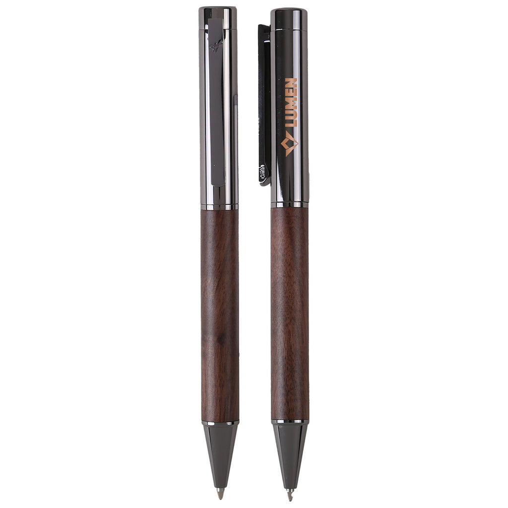 Write in sophisticated style with a custom Hub Pens Gunmetal Luxwood Ballpoint pen. Made from genuine rosewood and gunmetal, the upper barrel features a bronze laser-engraved imprint that complements the wood tone. This pen's elegant statement makes it a unique gift opportunity for multiple occasions. Make sure you order today.The minimum order for this product is 25 pieces.