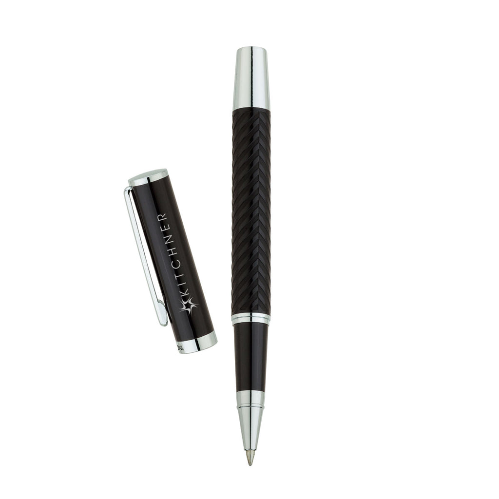 Enliven your custom logoed giveaway campaign with a bold statement courtesy of Bettoni Black Varese Rollerball Pen. It's a fashion-forward writing utensil with a wide body that will exhibit your good taste in the boardroom and outside. Your logo goes on its high-gloss lacquered cap. Custom pens offer cost-effective marketing to enhance corporate imaging of brand and remind customers of your company's name repeatedly.The minimum order for this product is 50 pieces.