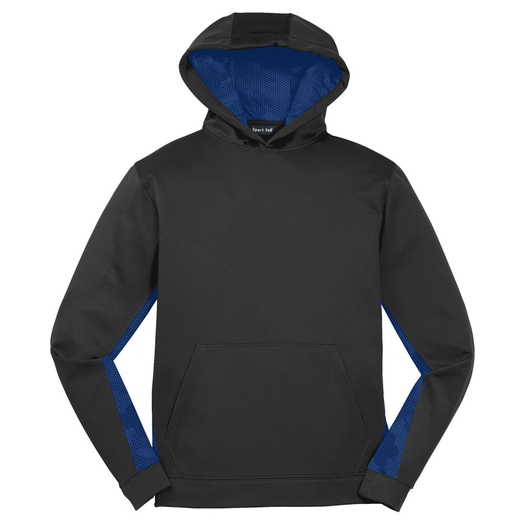 When the weather gets tough, so must you. That's the idea behind this Sport-Tek Youth Black/True Royal Sport-Wick CamoHex Fleece Colorblock Hooded Pullover. Add your own custom embroidery to make this a piece of corporate apparel that anyone can enjoy. Layering is ideally suited to serve as your canvas, and this is an item that will work for you in the elements, not against.Highlights