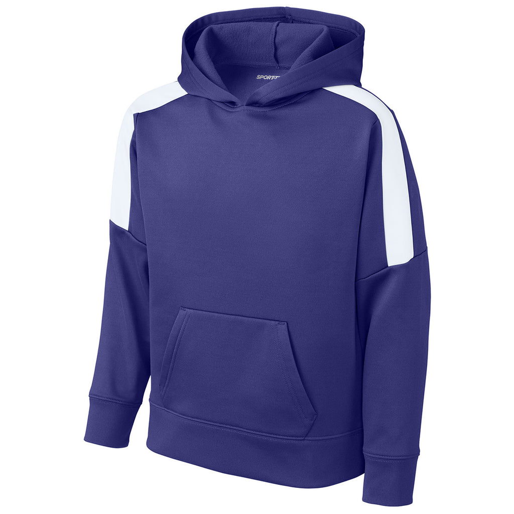 Sport-Tek Youth Purple/ White Sport-Wick Fleece United Pullover Hoodie with a custom logo is the perfect choice for creating a school look that everyone can enjoy. The simple hoodie with a front pouch pocket can be worn alone or layered as needed for sports, class, or organized events. Place an order right away.Corresponding Men's Style: Sport-Tek Men's Purple/ White Sport-Wick Fleece United Pullover Hoodie