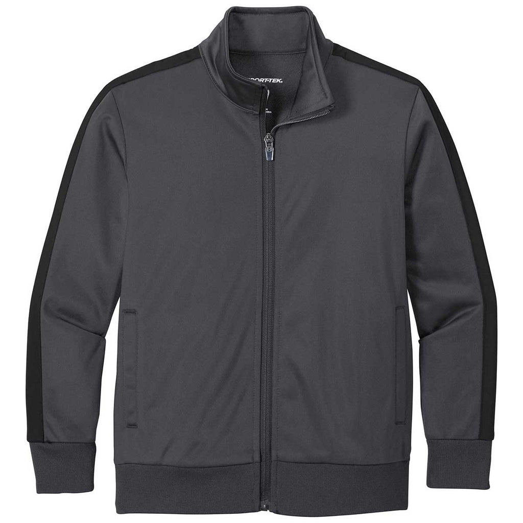 Sport-Tek Youth Graphite Grey/Black Tricot Track Jacket