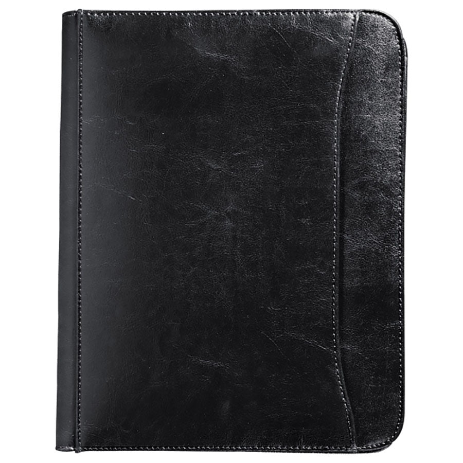 Introduce your clients to the Leed's Black Renaissance Writing Pad, a perfect blend of elegance and practicality for the discerning professional. Made from sturdy yet soft Italian-style leather, this writing pad exudes sophistication. The interior organizer keeps essentials neatly arranged with a gusseted file pocket, multiple business card pockets, and a calculator pocket.