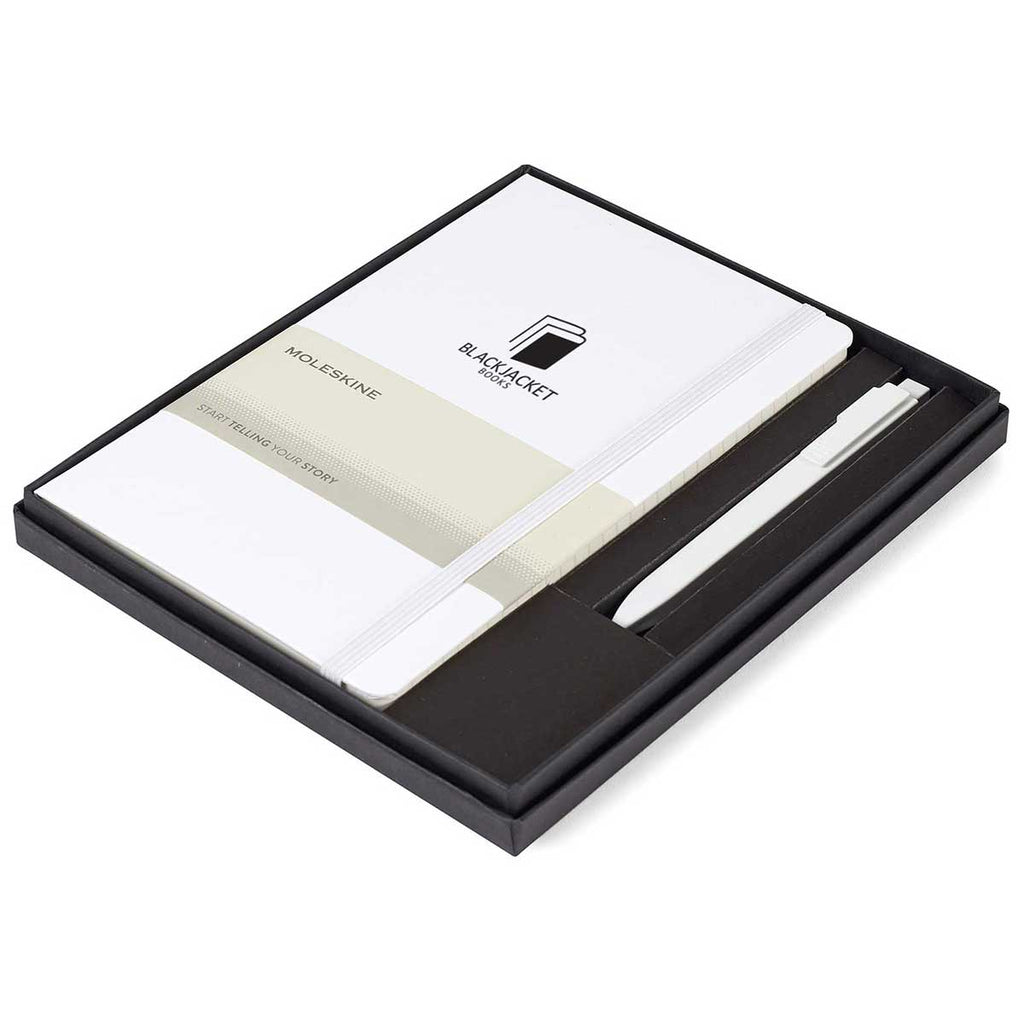 - This gift set includes one Hard Cover Ruled Large Notebook and one GO Pen packaged in a two-piece Moleskine gift box