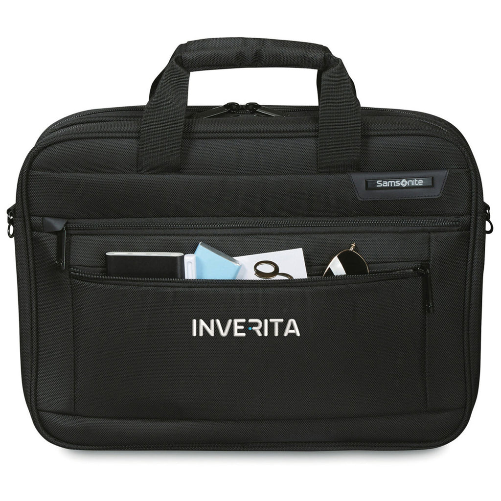 The Samsonite Black Classic Business Perfect Fit Two Gusset Computer Portfolio is a briefcase designed for the modern professional. Add your company's custom logo or design to the stylish, all-black exterior of this convenient bag, which comes complete with plenty of places to store your electronics, documents, and more.