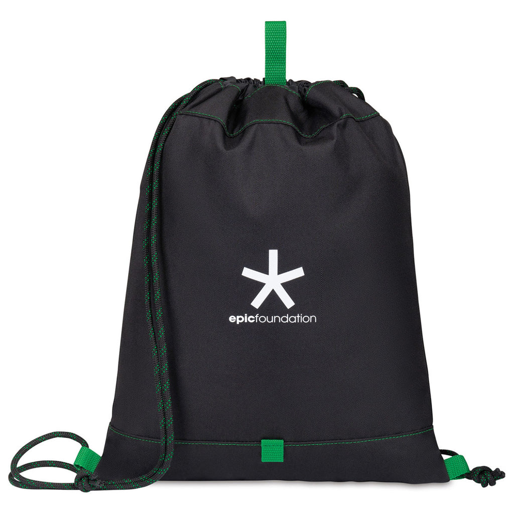 - A modern and sustainable update to a classic cinchpack using recycled fabric and webbing made from plastic bottles