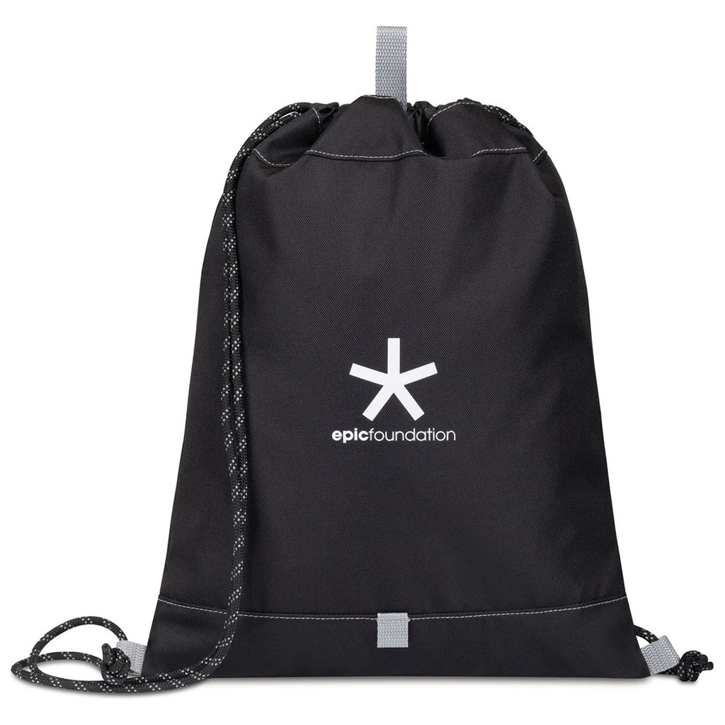 - A modern and sustainable update to a classic cinchpack using recycled fabric and webbing made from plastic bottles