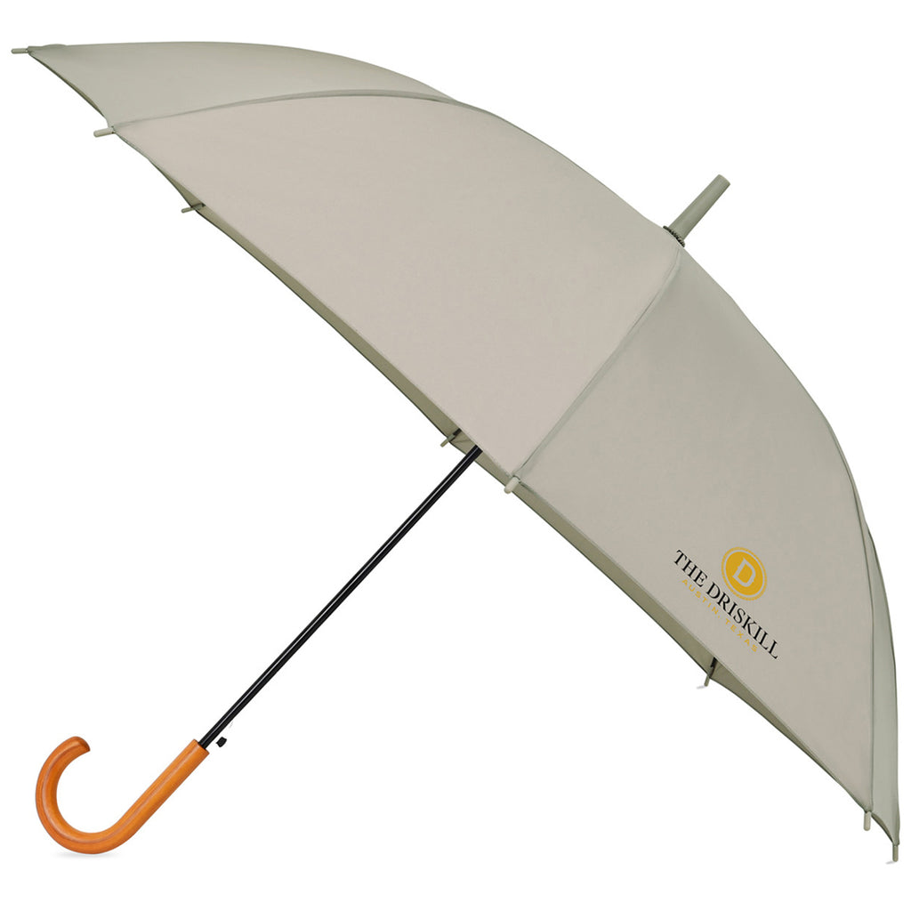 Add your corporate logo to the Elements Tan 50" Recycled Auto Open Hospitality Umbrella to make sure your brand is obvious as clients and guests utilize the umbrellas as needed. The gorgeous umbrella has a classic wooden handle and is made from recycled materials to add class and style to function.