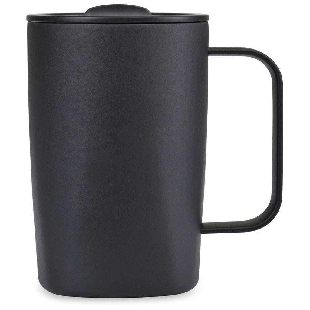 Aviana Black Rowan Recycled Mug - 15 Oz. with a corporate logo is a fun and eco-friendly way to offer guests coffee mugs that can be used as gifts. The stainless steel mug is sweatproof with a leak-resistant lid, making it great for coffee or tea on the go, on your morning commute, or as you lounge at home.The minimum order for this product is 25 pieces.