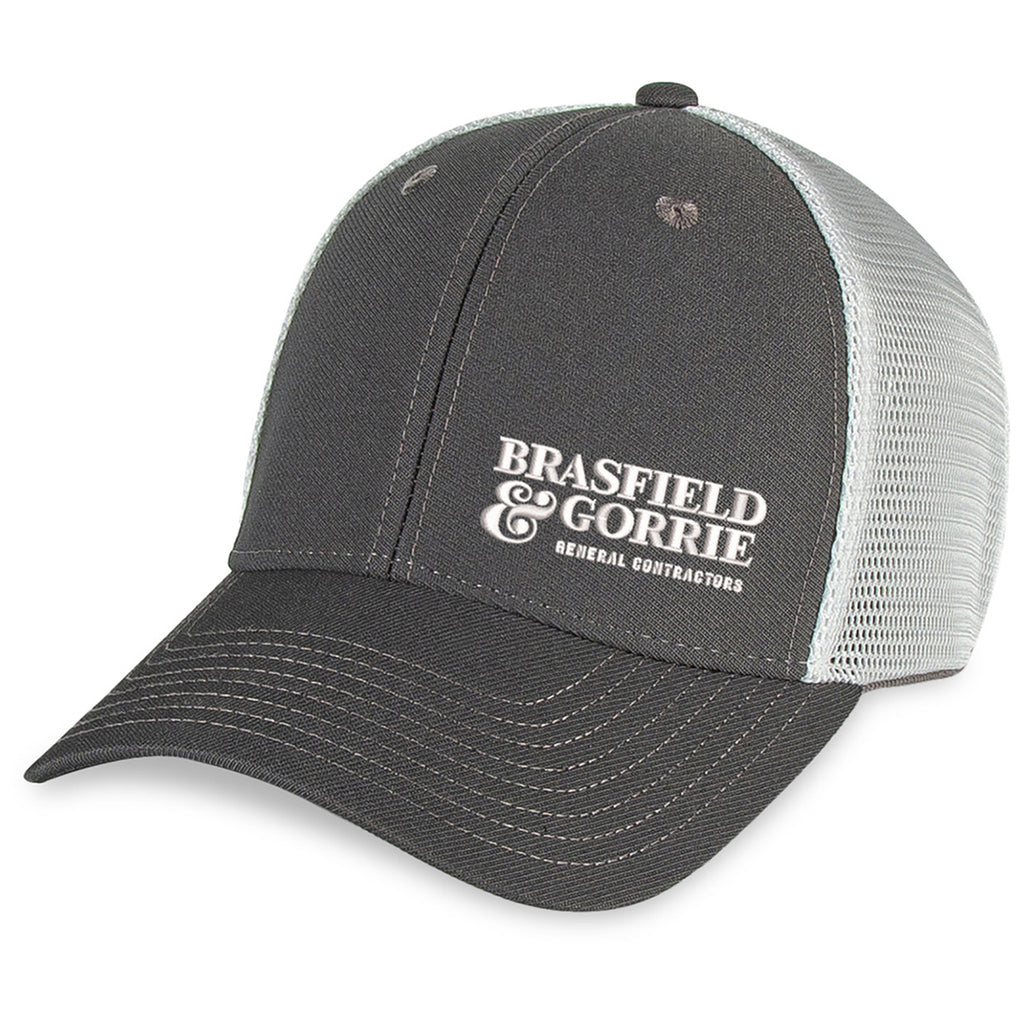 Merrimack Hat Co. Charcoal/White Casey Trucker custom cap is a fan favorite with the breathable mesh backing and antibacterial headband. The snapback closure is adjustable for most sizes, making it a wonderful promotional item for recruiting events or trade shows. Choose the color combination you like most and get started on an order.