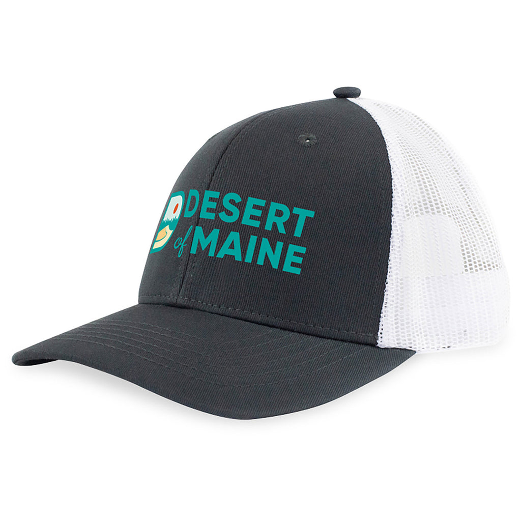 Merrimack Hat Co. Charcoal/White Colt Trucker, with a corporate logo, is a wonderful option for promoting your company name. The trucker hat has a slightly curved rim, structured front panels, and mesh back panels for ventilation. Perfect for working outdoors, employee wear, or general wear each day.