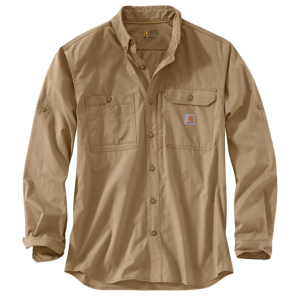 Carhartt Men's Dark Khaki Force Ridgefield Solid LS Shirt
