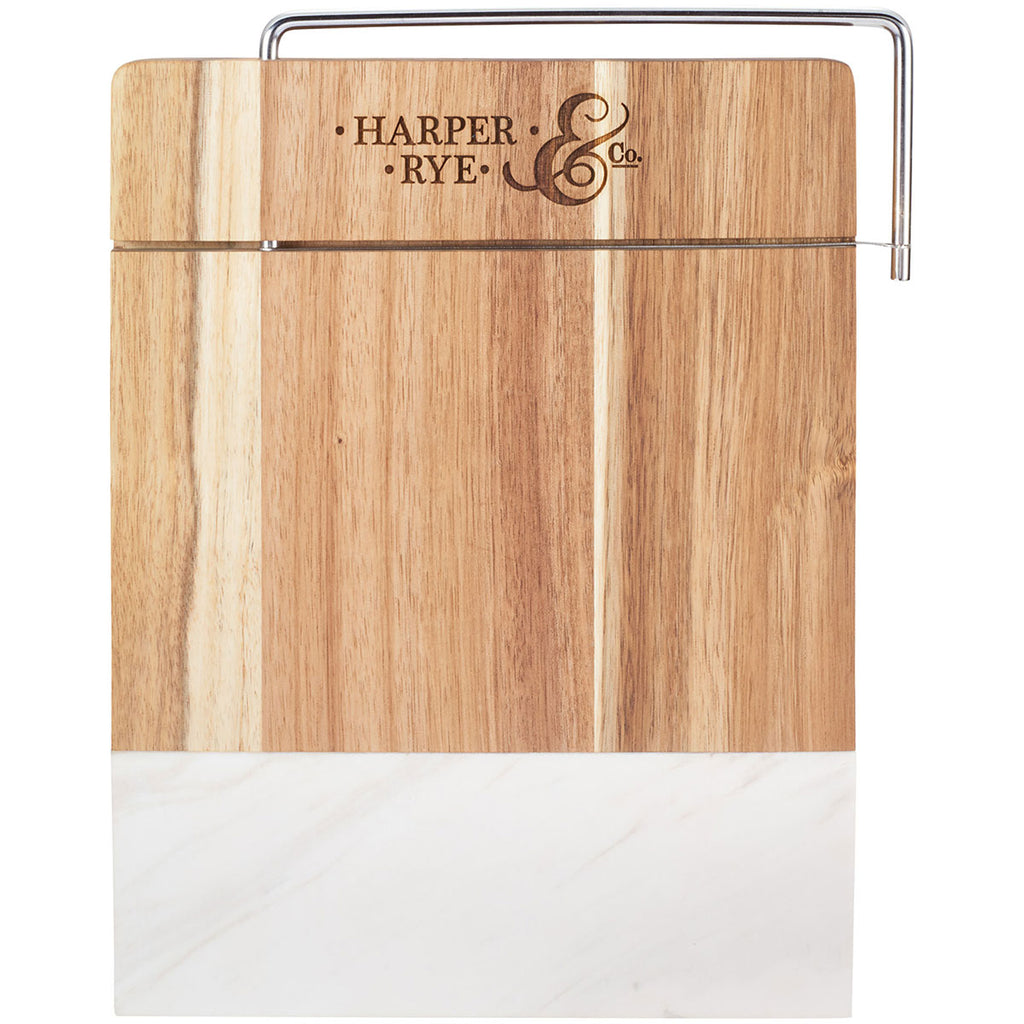 - Acacia wood and marble cheese cutting board with stainless steel handle and blade
