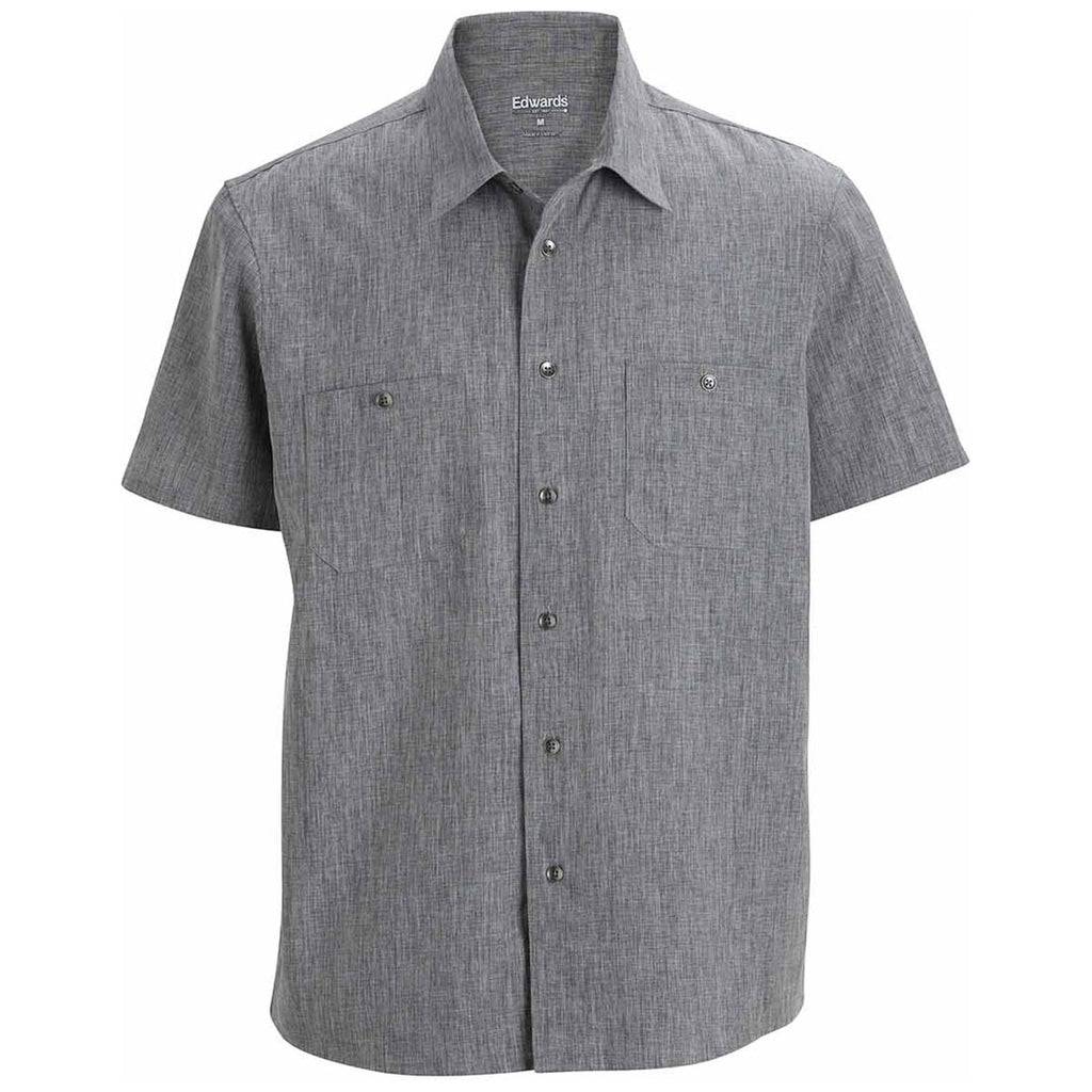 Edwards Men's Black Heather Melange Ultra-Light Chambray Shirt with embroidery creates a stylish look ready for the office or a night out. The short sleeve button-up with two chest pockets is ultra-light making it great for the office with a jacket as a uniform or to head out with friends. Place an order today before these sell out.Highlights