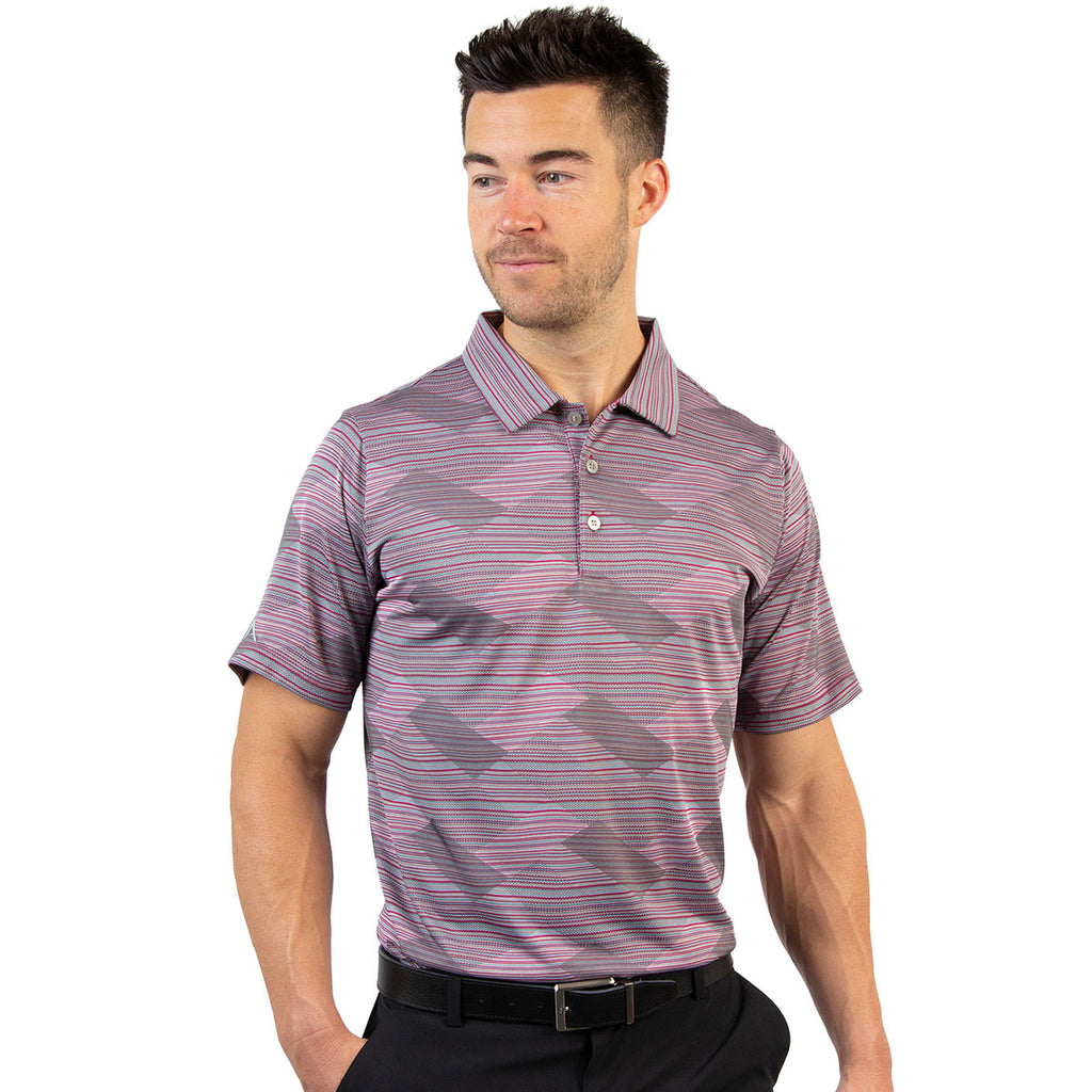 Show your style at the next golf event with the Antigua Men's Radish Multi Method polo with fashionable geometric pattern in a range of classic colors. Perfect for hitting the links, the Desert Dry moisture wicking, side slits, and 3 button placket will allow for the range of movement you need to play your best. Also ideal for a trade show where a custom polo shirt is needed to show company affiliation through a corporate logo, this shirt can help you send a message while staying cool. Order several to use as employee apparel at the next recruiting event or different colors to fill your personal wardrobe. Why fit in when you can stand out with Antigua.Highlights