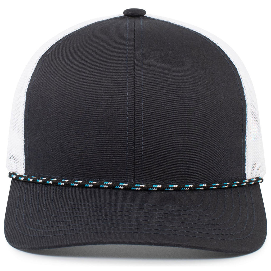 Pacific Headwear Navy/White/Navy Trucker Snapback Braid Cap